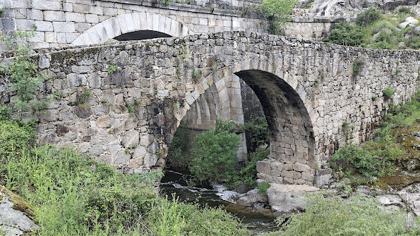Cruzo por el puente original, una estructura andalusí remodelada en el siglo XVIII. Conserva aún el perfil en lomo de asno y un pavimento de grandes losas de granito. Junto al punto de información, un sendero entre la roca permite ascender a un mirador natural de la presa del Grajal, punto final de esta ruta circular. Finalizo el recorrido a las 12:00, ya con sol.